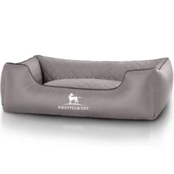Das gepolsterte Bett bietet Schutz vor kalten Böden sowie vor Zugluft und ist in verschiedenen Farbvarianten passend zu Hund oder Wohnambiente gehalten.