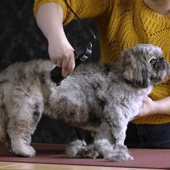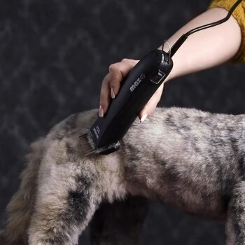 Beste Voraussetzungen für die Schur mit der Maschine: Fell auskämmen, grobe Verfilzungen mit einer passenden Tierhaarschneidemaschine und einem Feinzahnschneidsatz entfernen. Tier baden und sehr gut trocken föhnen. Dabei ausreichend Abstand halten und immer mit dem Haarwuchs bürsten und trocknen. Schneidsatz ölen.