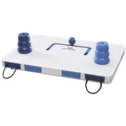 Hunde sind sehr intelligente und wissbegierige Tiere, welche nicht nur körperlich durch Spielen und Training, sondern auch geistig beschäftigt und herausgefrodert werden wollen. Durch den robust, aus Kunststoff gefertigten Dog Activity Move2Win von Trixie, können Sie Ihren Hund immer wieder von neuem fordern und durch das gemeinsame Spielen und Trainieren die Bindung zu Ihrem Liebling stärken. Das Brettspiel lässt sich gaz einfach mit kleinen Snacks oder Leckerlies befüllen, welche Ihren Hund zum Spielen annimieren. Durch Öffnen der Schubfächer, mit Hilfe der Schlaufen, bzw. durch Verschieben der jeweiligen Stempel, gelangt er an seine Belohnung. Nutzt man innerhalb des Spiels die Kegel als Stopper, lässt sich der Schwierigkeitsgrad steigern. Die inetgrierten Gummifüße machen das Brettspiel zudem äußerst standfest und verhindern somit ein Wegrutschen während des Spiels.