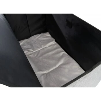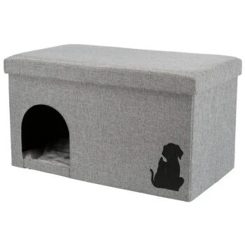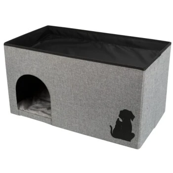 Die moderne Liegeplatz aus hochwertigem Webstoff und flauschigem Plüsch bietet einen komfortablen und kuschelweichen Schlafplatz für Katzen und kleine Hunde.Die Höhle ist faltbar, wodurch sie beim nicht verwenden gut verstaut werden kann. Durch den abnehmbarem, gepolstertem Deckel kann man das darunterliegende Staufach für Kleinigkeiten verwenden. Dank der Klettverschlüsse am Staufach-Boden lässt sich der Zwischenboden und damit die Höhle komplett von oben öffnen. Das Kissen mit Plüsch-Bezug (Polyester) und Polyestervlies-Füllung, gesteppt läd Ihren Liebling zum kuscheln ein.