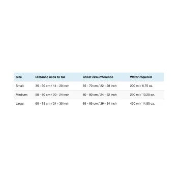 | Größe | Länge | Brustumfang | Nackenumfang | Wasserbedarf |